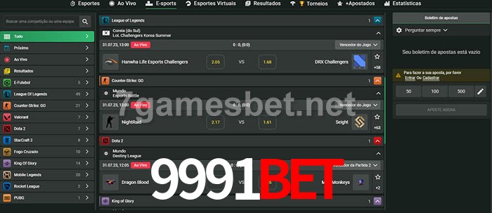 O 9991bet oferece uma grande seleção de opções de apostas em e-sports com probabilidades competitivas